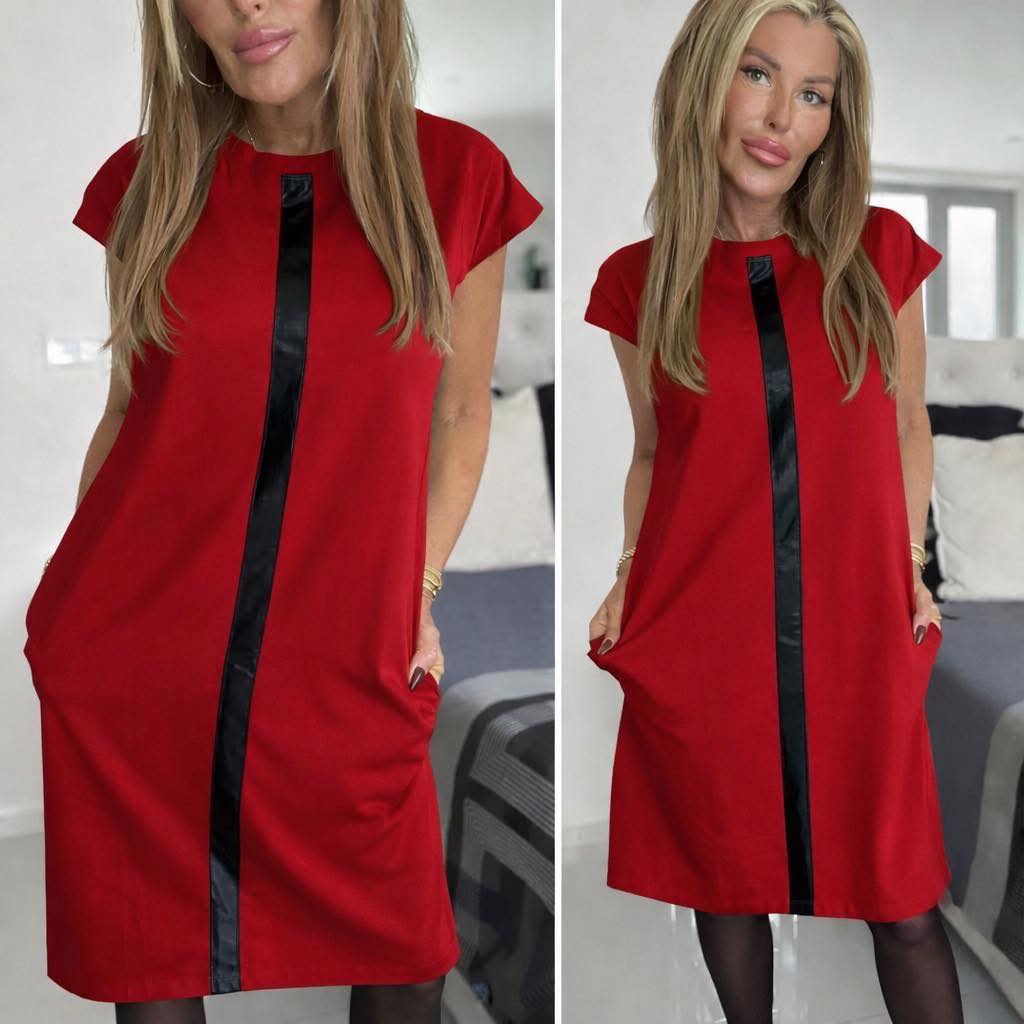 Dámské šaty s pruhem v červené barvě