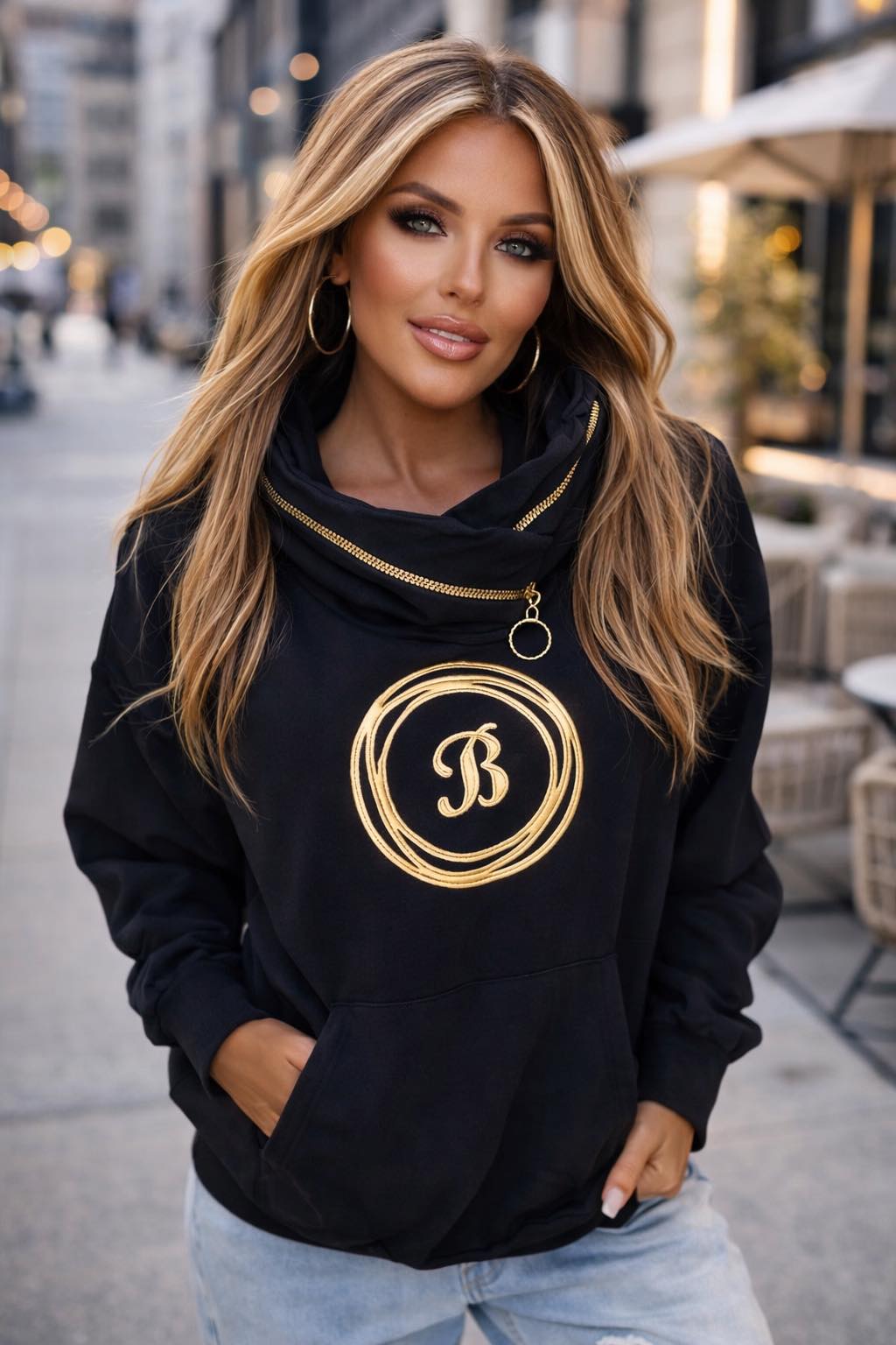 Nádherná dámska mikina so zvýšeným golierom a zlato vyšitým nápisom B, je skvelý kúsok do moderného šatníka.