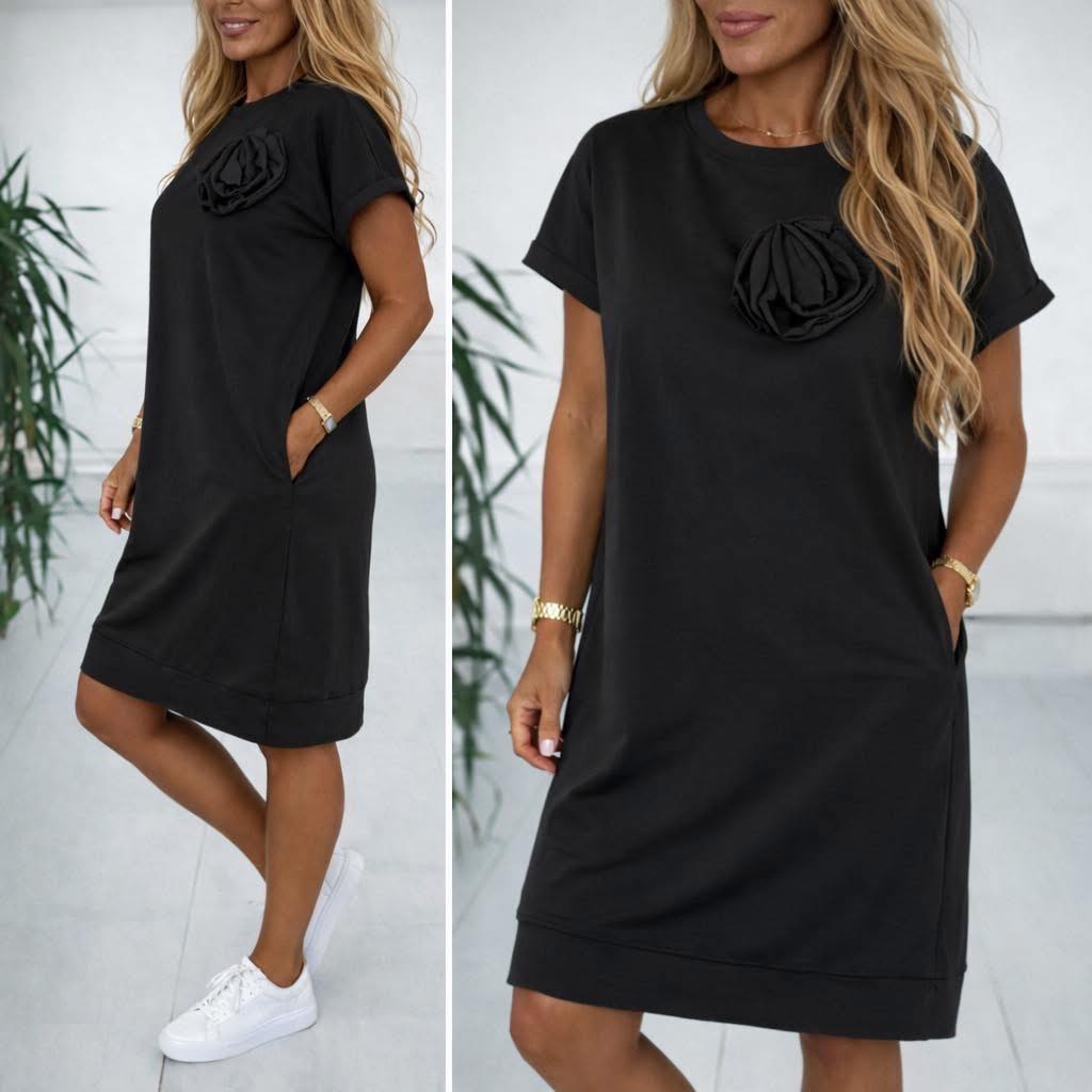 Super bavlněná šatovka s květem vystupujícím na přední straně.