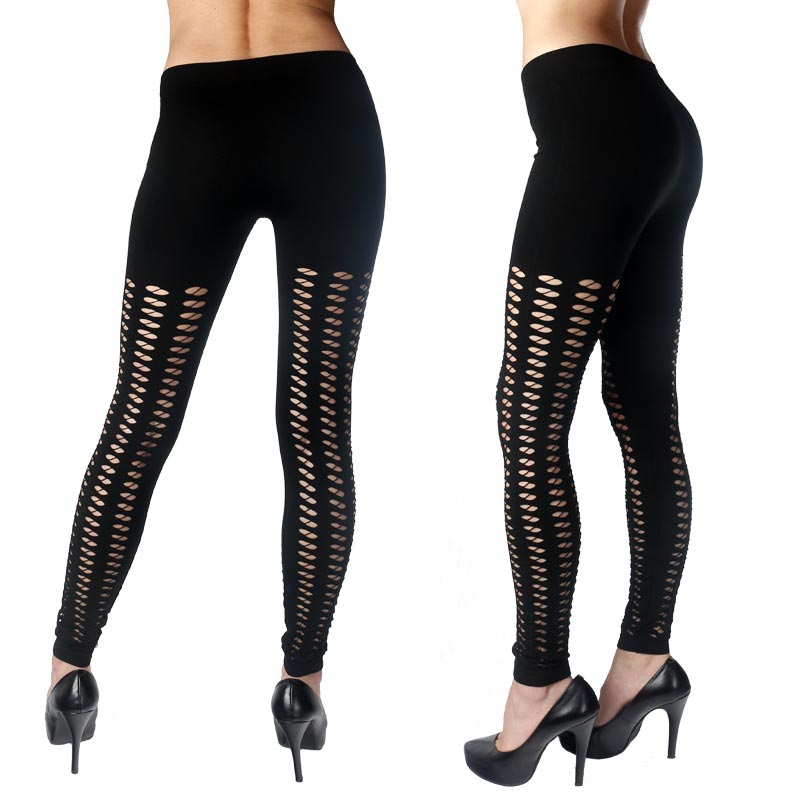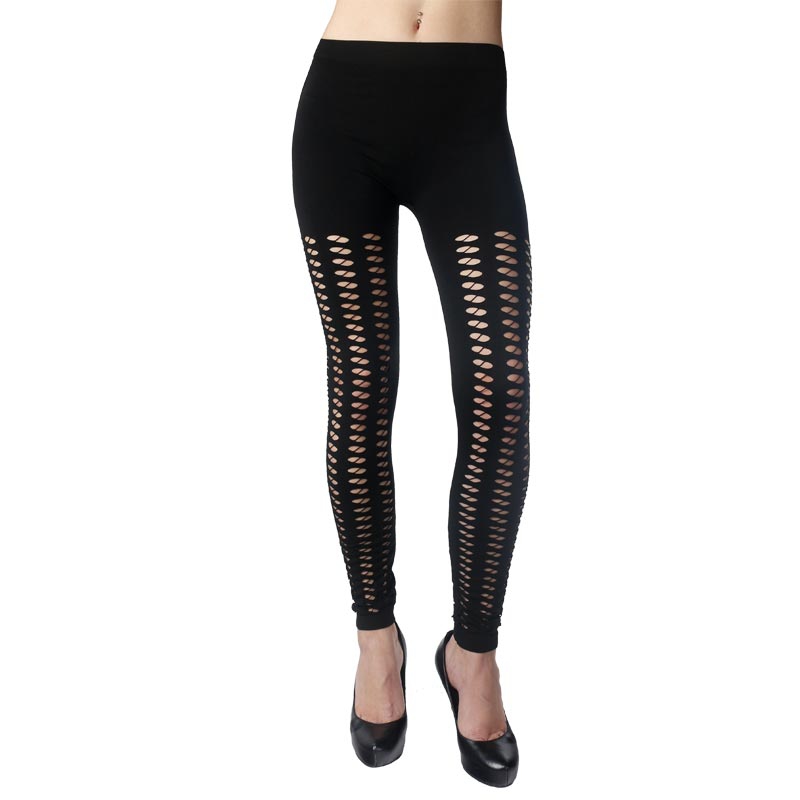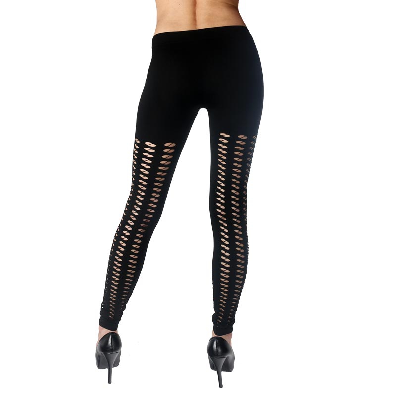 Dámske legínové nohavice sú hitom a sú perfektnou voľbou pre akúkoľvek príležitosť. Tento model elastických dámskych nohavíc je veľmi moderné a nepřehlédnutený. Po celej dĺžke sú v troch radoch vyrezávané oka. Tieto legíny dokonale zvýrazní vašu postavu a dodá vám elegantný vzhľad. Tieto legíny ocenia slečny aj dámy, ktoré chcú byť vidieť.