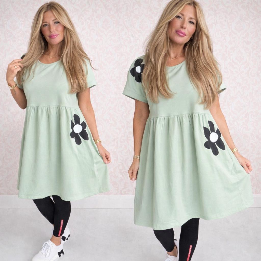 Dámske šaty s kvetmi - svetlo zelená