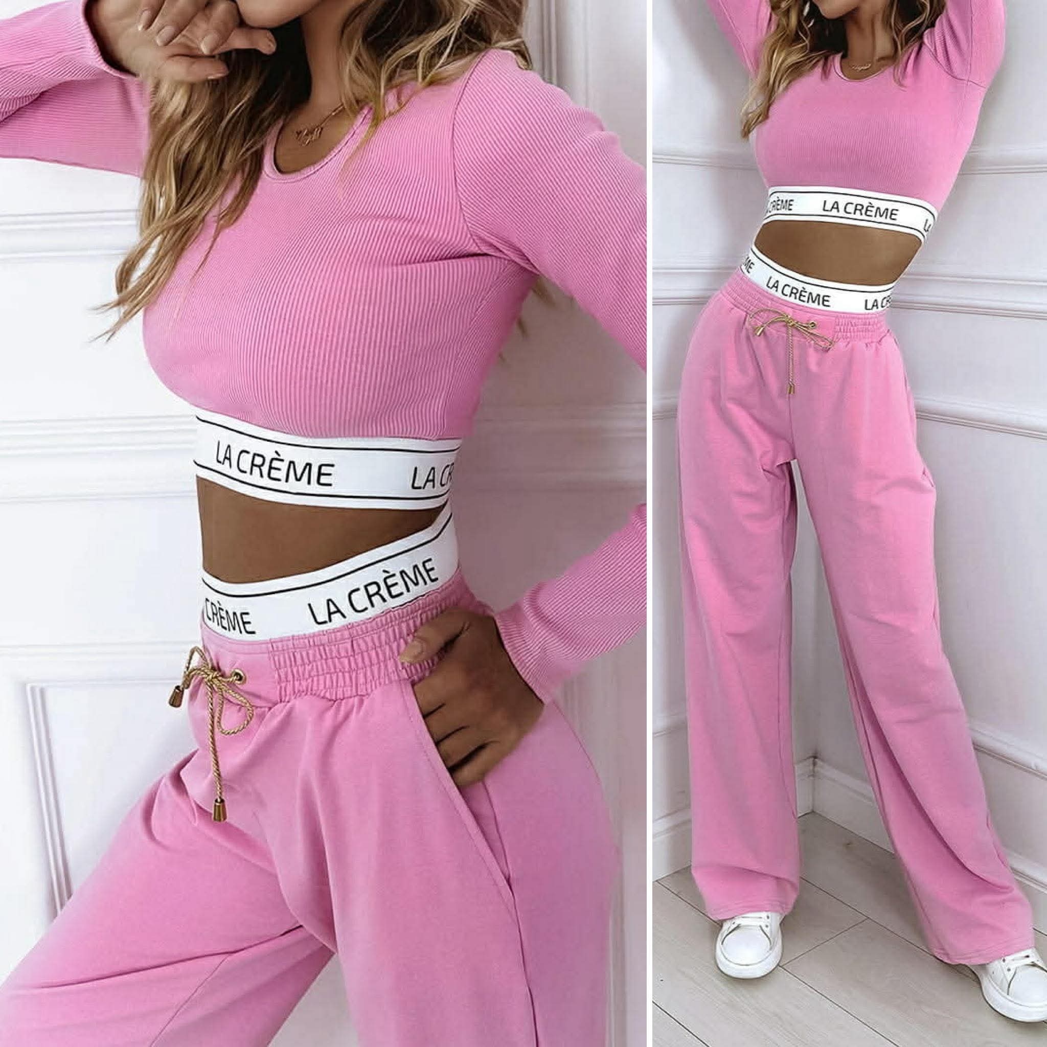 Dámsky set so širokými nohavicami a crop topom LA CRÉMA