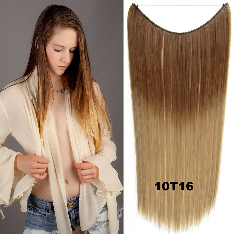 Flip in pás rovných vlasov na rýchle predĺženie a zhustenie Vašich vlasov, s dĺžkou 55 cm, v odtieni ombre medovo hnedej s prechodom do pastelovo plávajúcej 10T16.