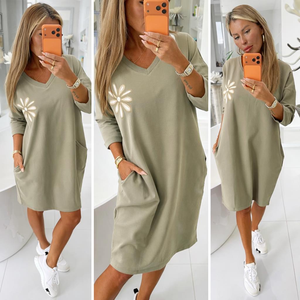 Dlhá šatovka a plieškom a vreckami v khaki farbe