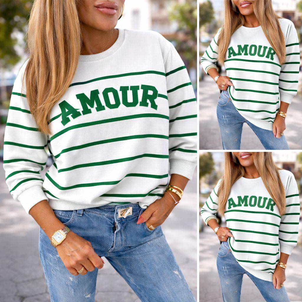 Dámska mikina biela so zelenými pruhmi a nápisom