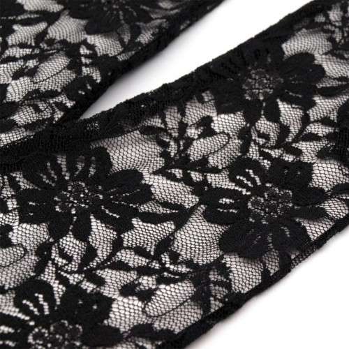 Čierne spoločenské rukavice s dĺžkou 43cm s čipkovaným vzorom.