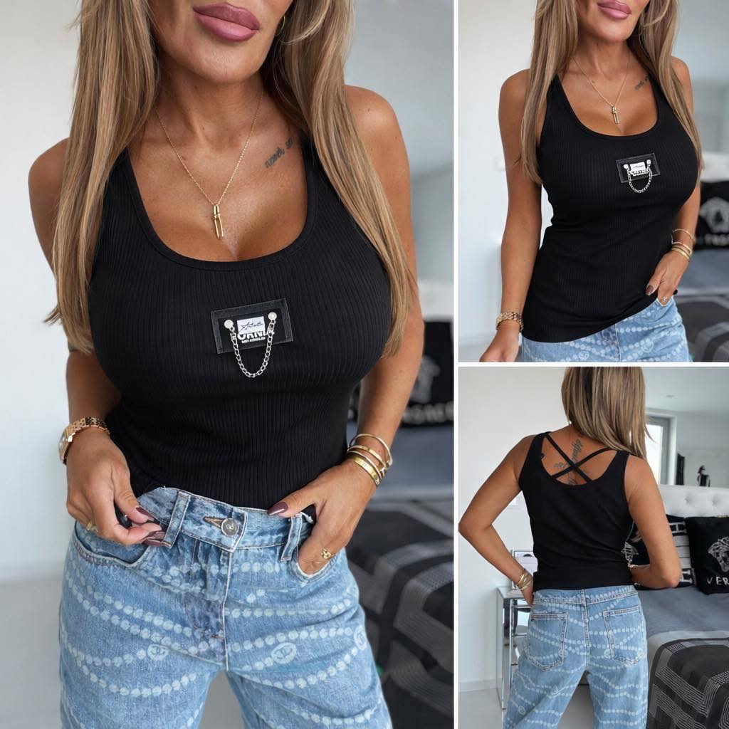Dámske bavlnené tielko v čiernej farbe s krížením na chrbte
